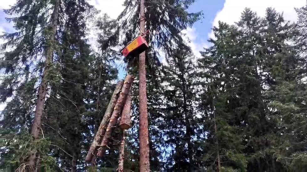Moderne Forstwirtschaft mit Kippmastseilgeräten und Satellitentechnik